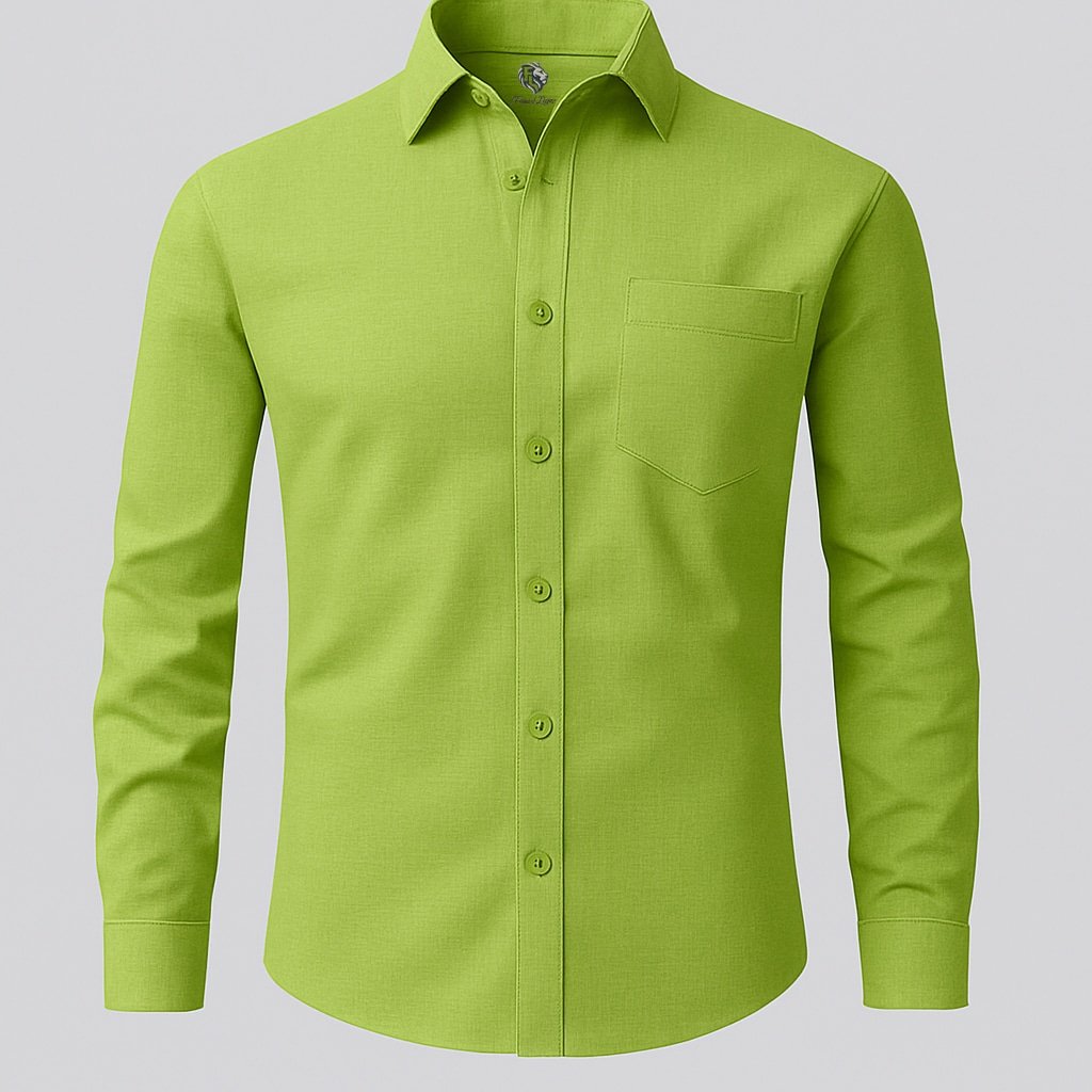 Lime Green Dark Cotton Linen Shirt Full Sleeves